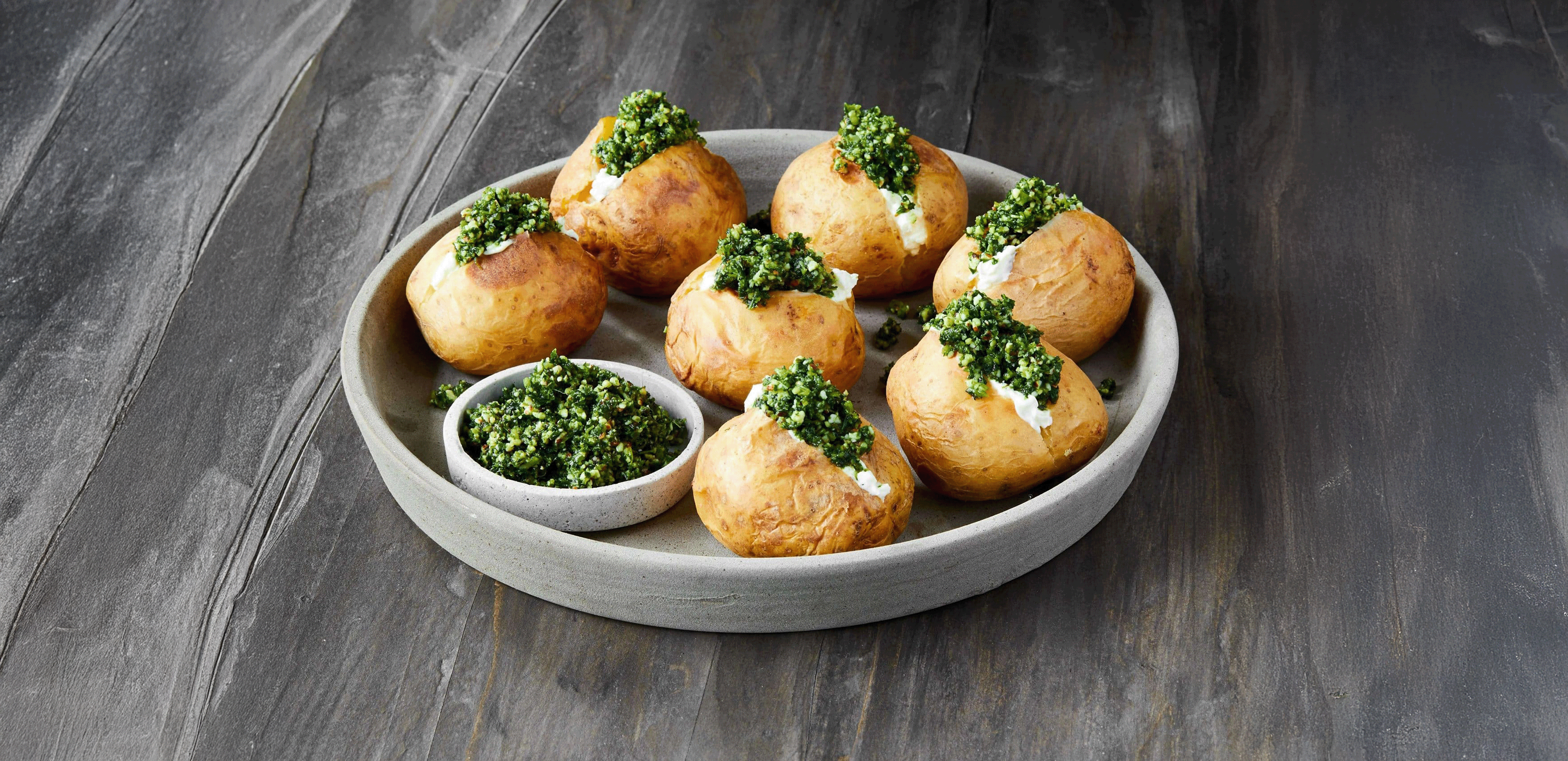 Forkogte bagekartofler sorteret efter vægt på ca. 200 g pr. stk. Perfekt som klassisk tilbehør med smør eller creme fraiche eller som selvstændig ret med rygeost og stenbiderrogn.