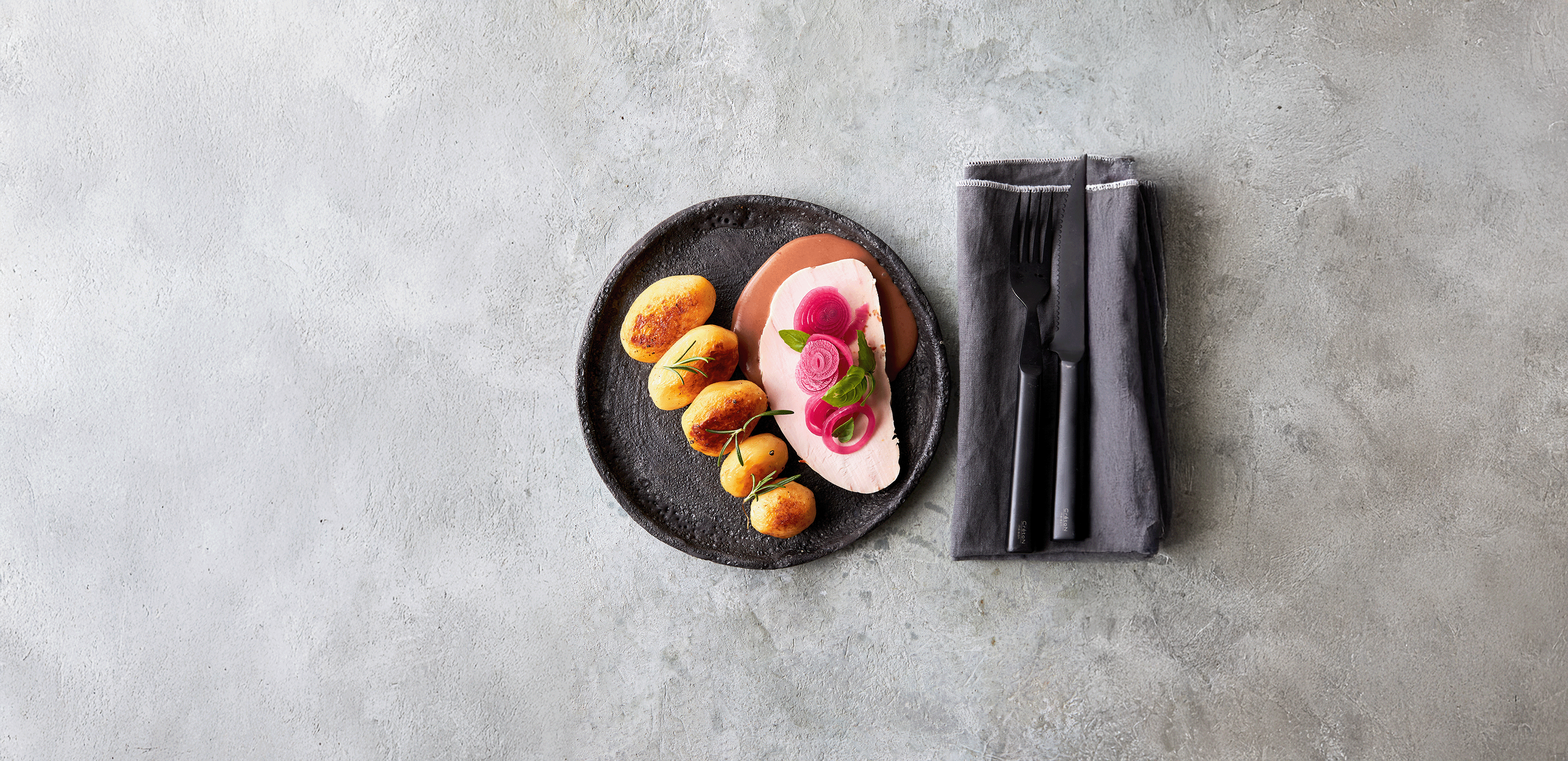 Danskproduceret diner kartofler, kogte uden skræl. Kogte kartofler af gule sorter og danske 70-80 % af året. De resterende 20-30 % er oprindelsen EU. Sorteret efter størrelse 35-45 mm, som måles over maven på kartoflen. Vægt angives som nettovægt, hvor der kan være forskel på hvor meget vand kartofler afgiver i posen under produktionen. Det meste af dette vand optages af kartoflen igen ved opvarmning i posen.