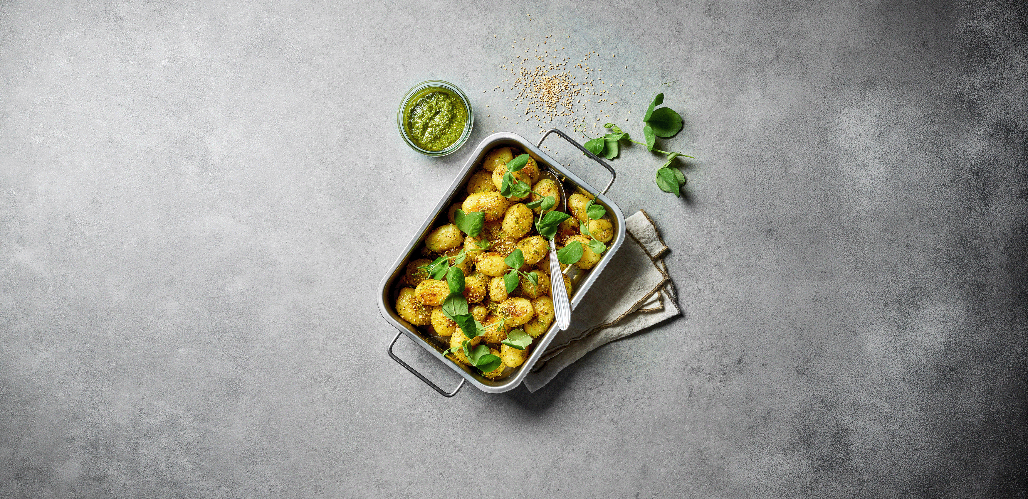 93% kartoffel, 7% marinade (vand, rapsolie, salt, maltodextrin, krydderier, aroma, krydderiekstrakt, aroma (smør), emulgator (E322), farvestof (E160a)).
